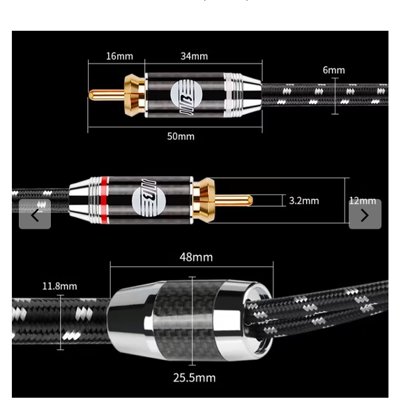 Vergoldete RCA-Stecker mit Carbonfaserhülse und integriertem Richtungspfeil garantieren eine dauerhaft korrosionsresistente, verlustarme Verbindung – für eine konstant hohe Signalqualität.