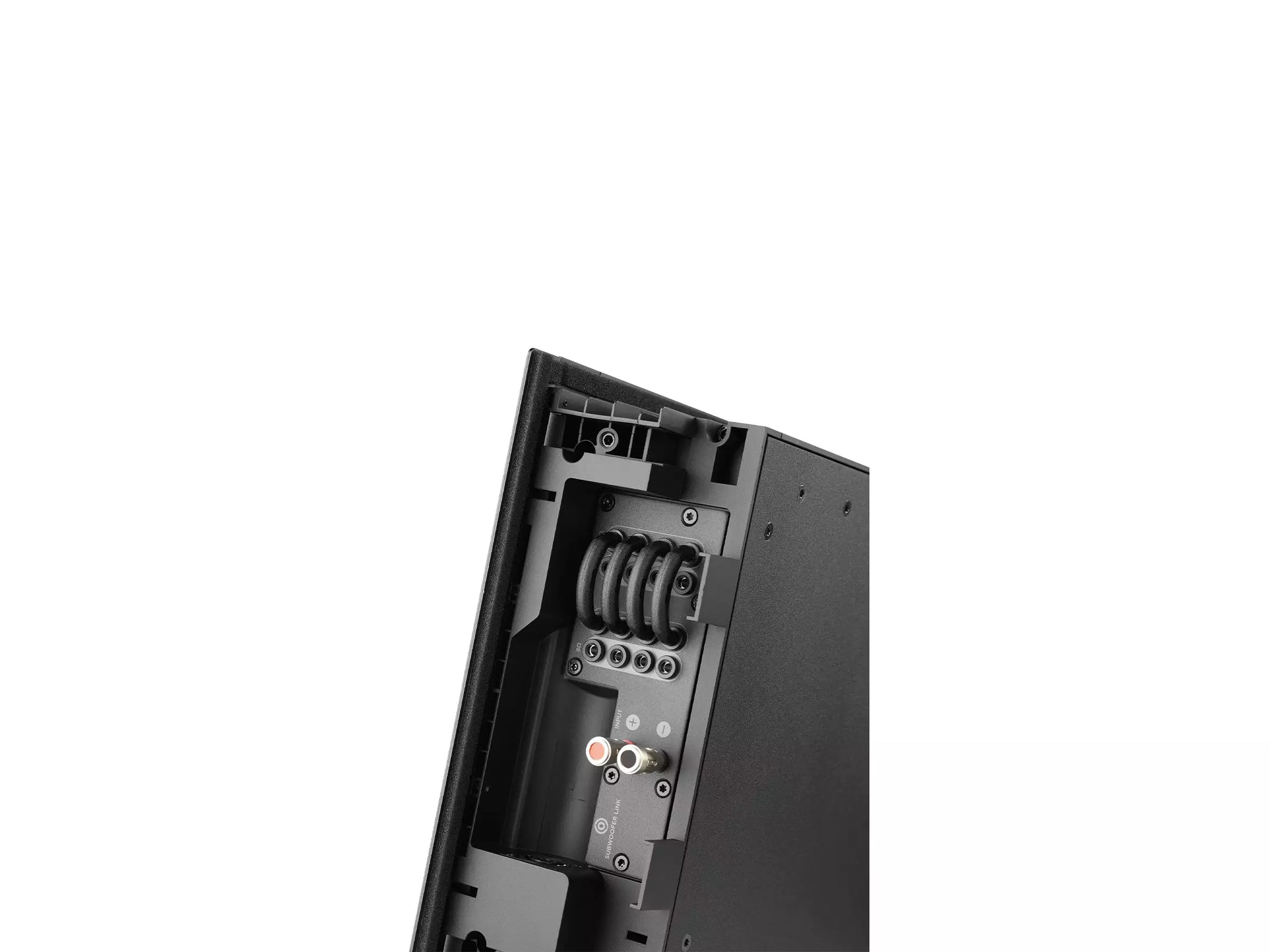 Die hochwertigen Schraubklemmen akzeptieren Lautsprecherkabel mit Bananensteckern oder Kabelschuhen, sowie blanken Kabelenden. -